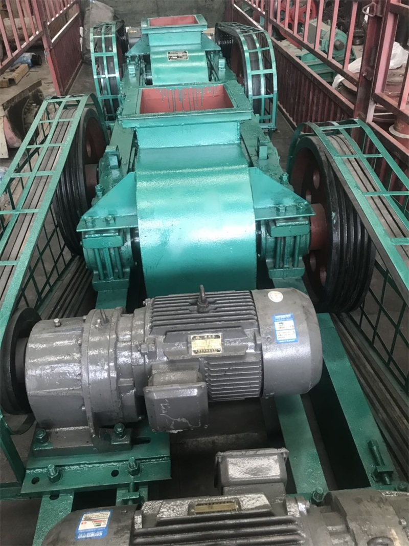 當(dāng)物料進(jìn)入機(jī)器的破碎腔以后,物料受到轉(zhuǎn)動(dòng)輥軸的嚙力作用,使物料***通過(guò)兩輥之間,同時(shí)受到輥軸的擠軋和剪磨,物料即開始碎裂,碎裂后的小顆粒沿著輥?zhàn)有D(zhuǎn)的切線,通過(guò)兩輥軸的間隙,向機(jī)器下方拋出,超過(guò)間隙的大顆粒物料,繼續(xù)被破碎成小顆粒排出。